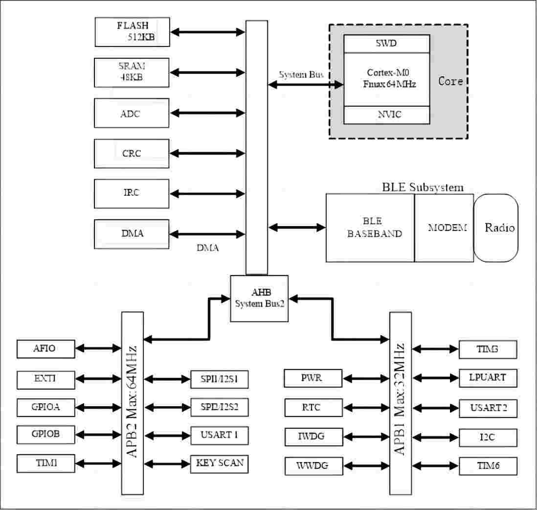 Number | BLE Stack | Flash(KB) | SRAM(KB) | Core | Vdd | RTC | SPI | I2S | I2C | USART | LPUART | GPIO | AMIC | DMA | 10位ADC | CRC | Package | Download |