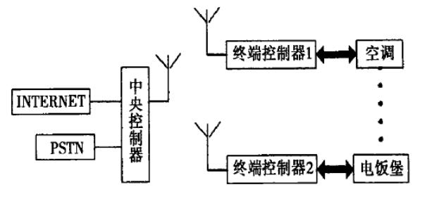 智能家居系統(tǒng)由內置藍牙芯片的系統(tǒng)中央控制器內置藍牙芯片和具有紅外轉換并粘于現(xiàn)有家電的各終端控制器家用計算機和網(wǎng)絡接口等部分組成。其中系統(tǒng)中央控制器通過家用計算機連入lnter-net ,并通過自己的PSTIN 公用電話父狀網(wǎng)次比均系縮中央挖制囂通過藍牙無線傳輸網(wǎng)絡同系統(tǒng)的各終端控制器通過藍牙無線傳輸組成星形拓撲結構。系統(tǒng)中央控制器通過藍牙無線傳輸網(wǎng)絡同系統(tǒng)的各終端控制器進行通訊傳輸控制命令和反饋信息,然后各終端控制器產生紅外控制信號或通過繼電器來最終控制相應的家電。