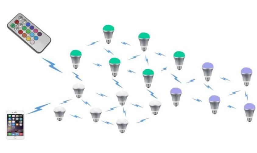 該方案采用巨微創新的MG-Mesh系統架構,用最低成本實現LED自組網和調光調色。手機和遙控器都可以控制。