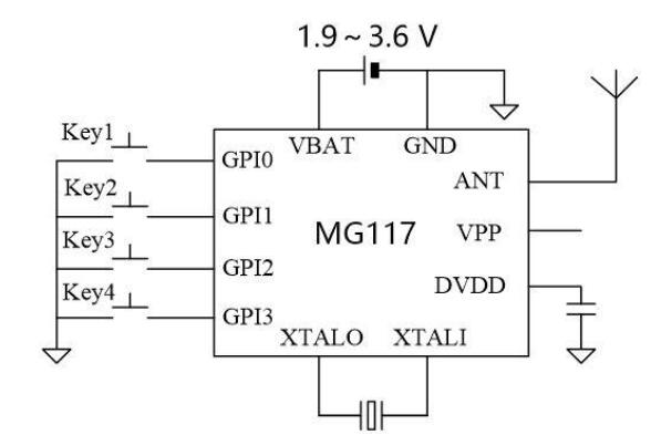 藍牙芯片MG127是具有低功耗、低成本的BLE 收發器,內部集成了發射機、接收機、GFSK 調制解調器和BLE 基帶處理。電源電壓1.9~3.6,可以采用一個紐扣電池(3.0v)供電,具備3uA待機電流,20mA@0dBm持續發射,18mA持續接收等特點。MG127 采用DFN3x3 封裝,只需搭配低成本MCU 和少數外圍被動器件,即可實現BLE 遙控、藍牙電子秤等應用。