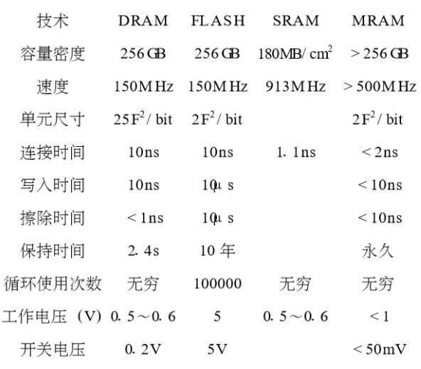 MRAM與現行各類存儲器的比較